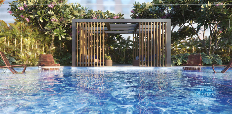 O Atmosfera é um residencial de luxo assinado pela Cyrela, projetado ao estilo condomínio clube e planejado por alguns dos melhores profissionais de arquitetura, engenharia e paisagismo do Brasil. O empreendimento ocupa uma área de mais de 8 mil m² na Rua Mariz e Barros, uma das principais da Tijuca, e fica ao lado de um centro comercial com mais de 200 lojas. São gardens e apartamentos de 3 a 4 quartos com metragens de 88 a 203m² com um lazer completo e exclusivo composto por piscinas adulto e infantil, piscina com 25 metros, solarium, churrasqueira, quadra poliesportiva, playground, fitness externo, academia, repouso, sauna úmida, brinquedoteca e muio mais.