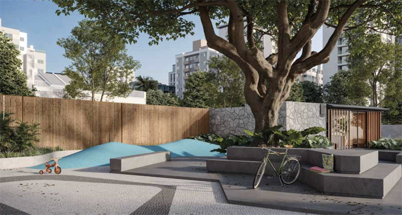 O terreno de mais de 25 mil m² permite o desenvolvimento de um parque urbano de mais de 5 mil m², projetado pelo prestigiado escritório de paisagismo Burle Marx. Desfrute de uma área de lazer completa, com piscinas adulto e infantil, salões de festas, área gourmet, academia, bicicletário e mais de 30 opções de lazer. É a maior área de lazer já vista no Rio de Janeiro.
