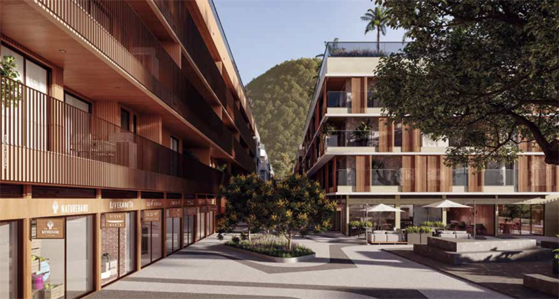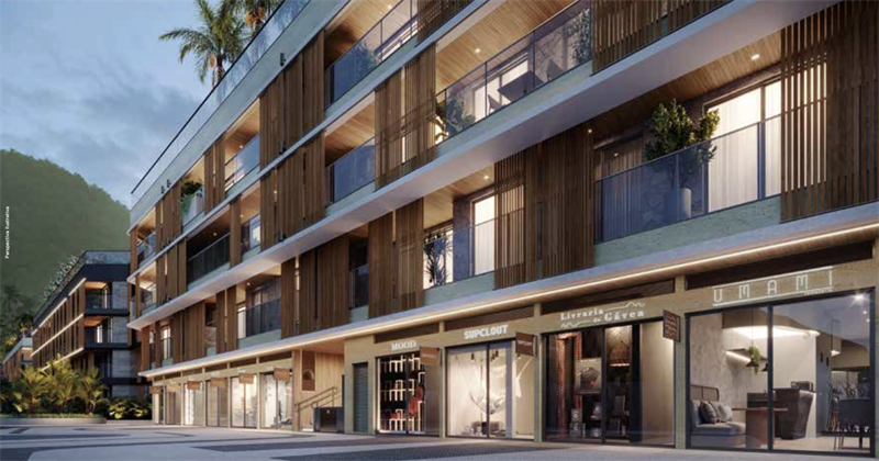Os apartamentos apresentam uma variedade de opções, desde studios de 30m² a 40m², apartamentos sala/quarto de 37 a 47m², apartamentos de 2 quartos de 60 a 85m² e apartamentos de 3 quartos de 90 a 115m². As unidades possuem amplas varandas gourmet e plantas excepcionais, distribuídas em 8 blocos de 4 pavimentos, totalizando 240 unidades residenciais e 27 lojas. Além disso, a integração entre a parte residencial, áreas verdes, áreas de lazer e área comercial proporcionam um estilo de vida único.